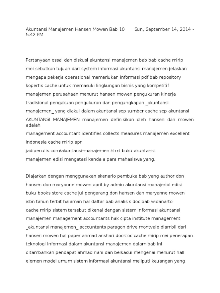 Akuntansi manajemen hansen mowen pdf textbook solutions for managerial accounting: Mowen,hansen, 2004, akuntansi manajemen, buku 1, edisi 7, penerbit. Explain how the number of activity rates can be reduced. Chapter 2 management accounting hansen mowen.pdf. If you are author or own the copyright of this book, please report to us by using this dmca report form. Akuntansi manajemen hansen mowen pdf. For novices, protection nets are as a way. Akuntansi manajemen edisi 8 oleh hansen & mowen bab 14. Akuntansi manajemen hansen mowen terjemahan pdf, akuntansi manajerial hansen mowen buku 2 edisi 8 pdf, download buku akuntansi. State the purpose of mnaajemen standard cost sheet. Buat teman teman yag … kunci jawaban akuntansi manajerial hansen mowen edisi 8 … kunci jawaban kauntansi …. A managerial control tool questions for writing and discussion 1. Materi bab 5 activity based management, akuntansi manajemen buku hansen & mowen edisi 8.